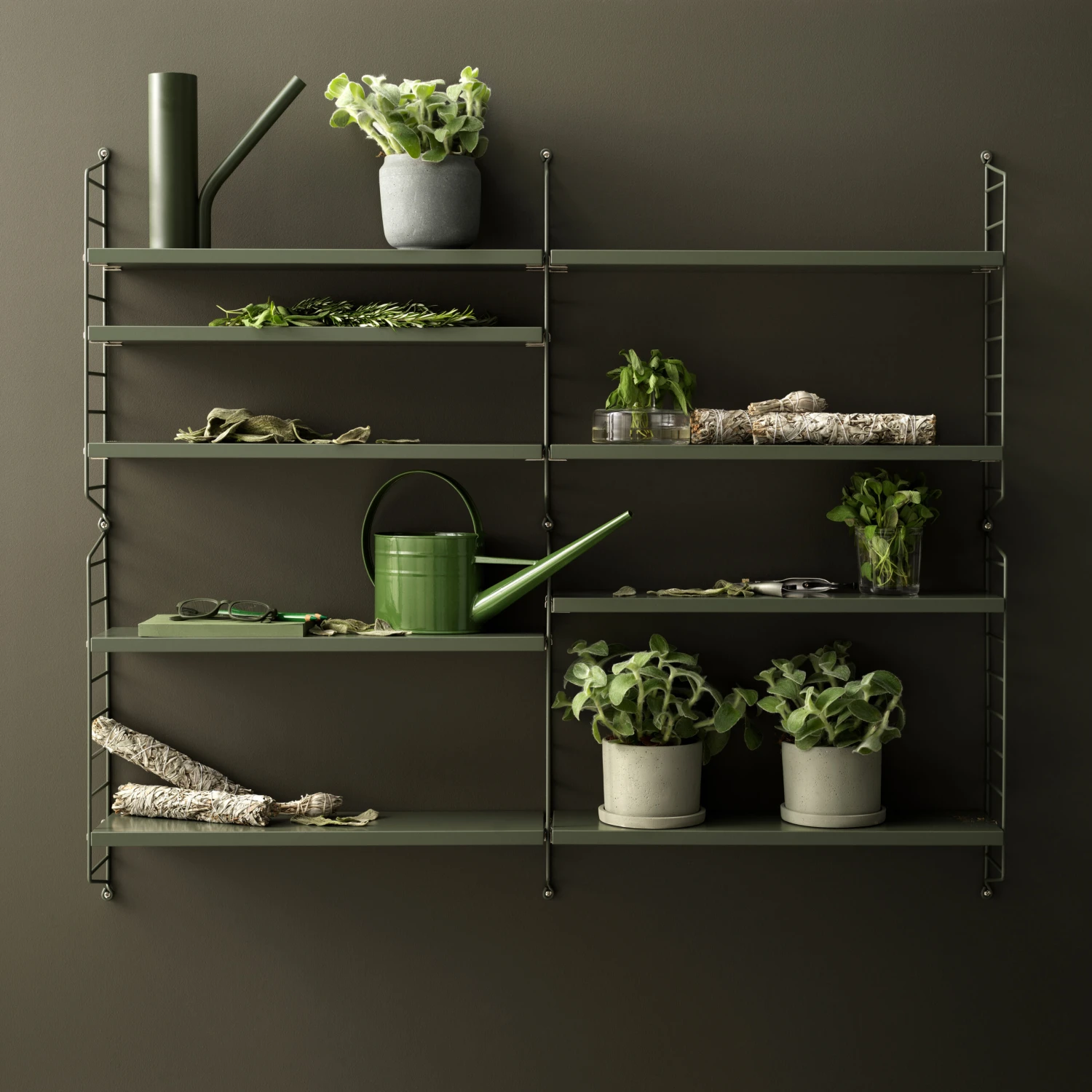 De String Pocket plank sage van String is handig voor opslag en voegt ook een rustgevende en harmonieuze groene tint toe aan uw huis. De klassieke String plank, de grote broer van de Pocket plank, werd in 1949 ontworpen door Nils “Nisse” en Kajsa Strinning. De kleinere Pocket versie is in 2005 ontworpen door Nisse Strinning. Het gestroomlijnde ontwerp van de Pocket plank geeft aan dat hij perfect is om uw sleutels en uw hoed op te hangen in de gang. Of zelfs als een aantrekkelijk en praktisch nachtkastje naast uw bed kan staan. De Pocket plank kan worden gecombineerd met andere planken uit de String collectie om een groter rekkensysteem te creëren, wanneer u een functioneel ontwerp met een meer persoonlijke stijl wilt. De String plank met zijn karakteristieke plankendragers in gelakt staal is geïnspireerd op het afdruiprek Elfa, dat ook is ontworpen door Strinning. Inmiddels is de String plank iconisch in Scandinavisch design en heeft het een plek in veel huizen over de hele wereld.
